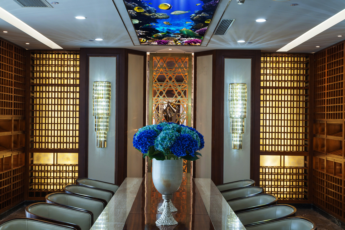 我們從談心區到品茶區,再從娛樂區到藏品展示區,又從電子高爾夫到紅酒品鑒區。沒有太多的拘泥于形式,也沒有固有的表達方式。我想,有時候一種隨遇而安,景隨心移也正是自然與心靈相通的另一種形式,恰又能顯得格外灑脫。這種不太純粹的表達方式難道不正合業主之意?