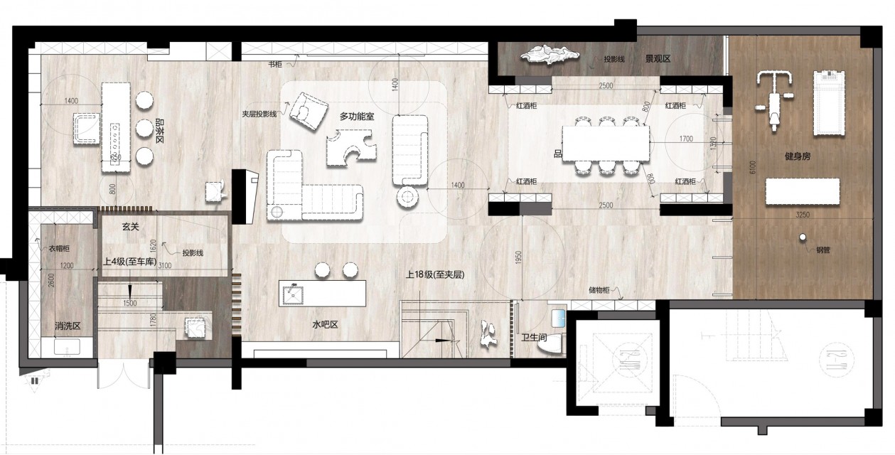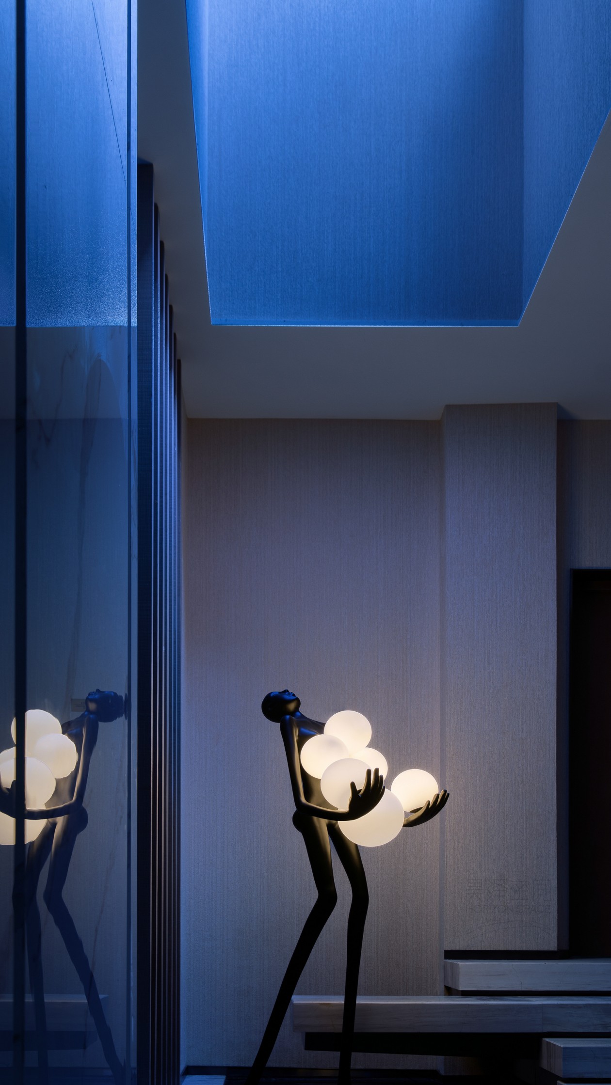在純粹的現代主義設計中,靜與空是兩種相互依存的設計境界,兩者皆是美的化身,前者強調自然之美,后者強調靈性之美。別墅整體分為地上兩層、地下室一層和夾層,配有紅酒區、品茶室等休閑區,合理有序的空間層次劃分,如畫卷般徐徐展開。