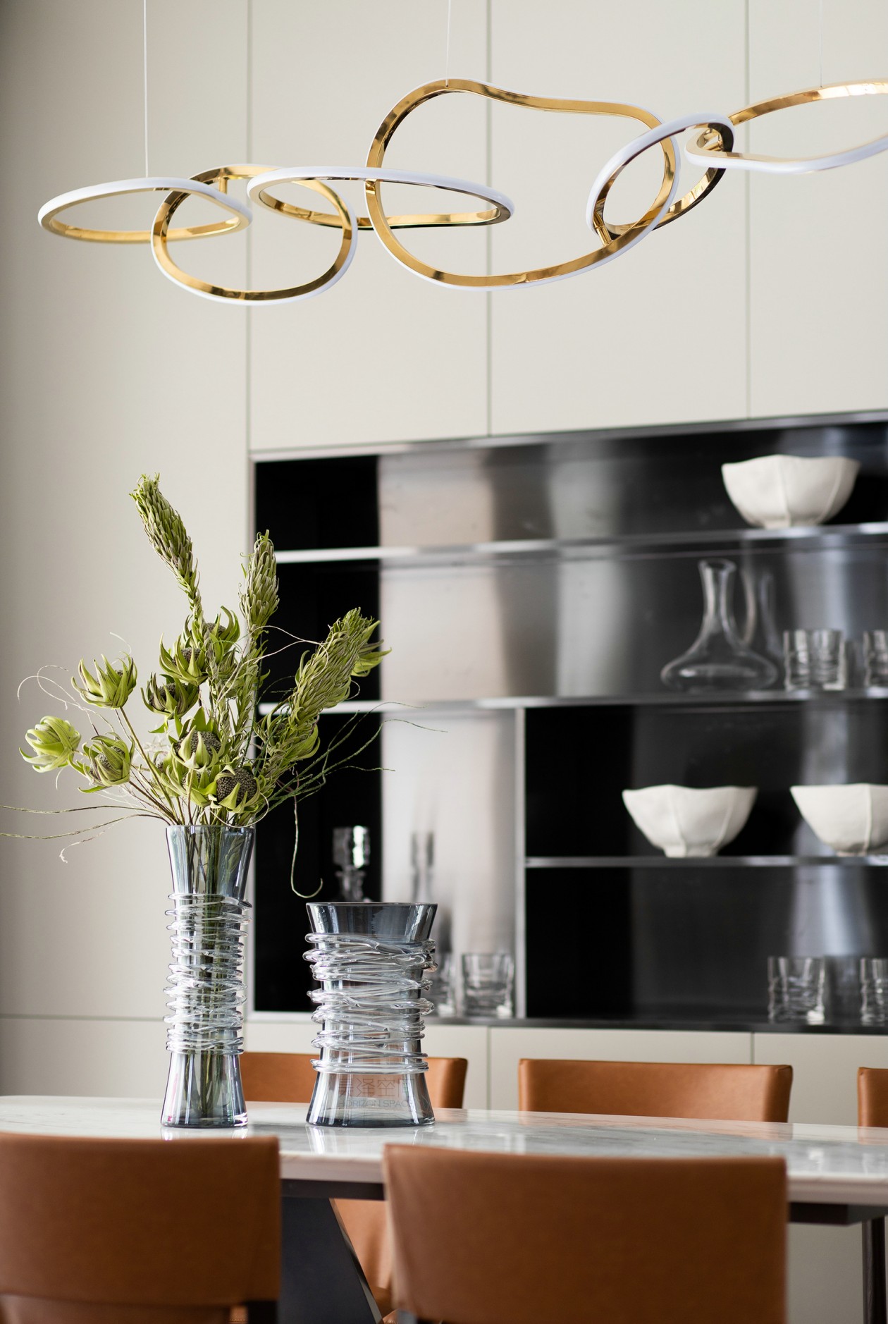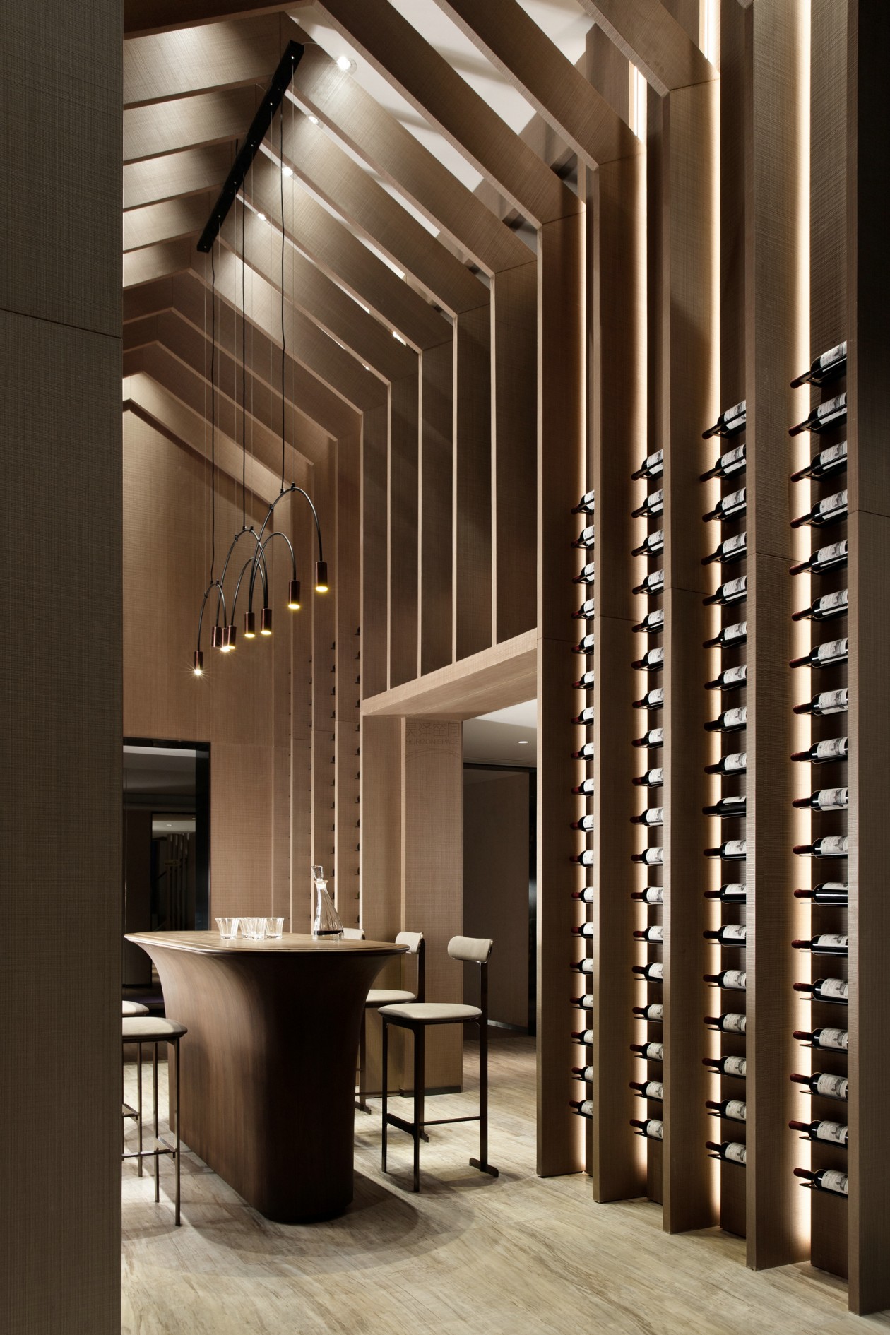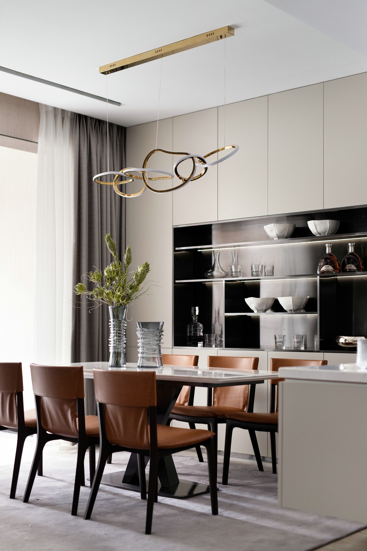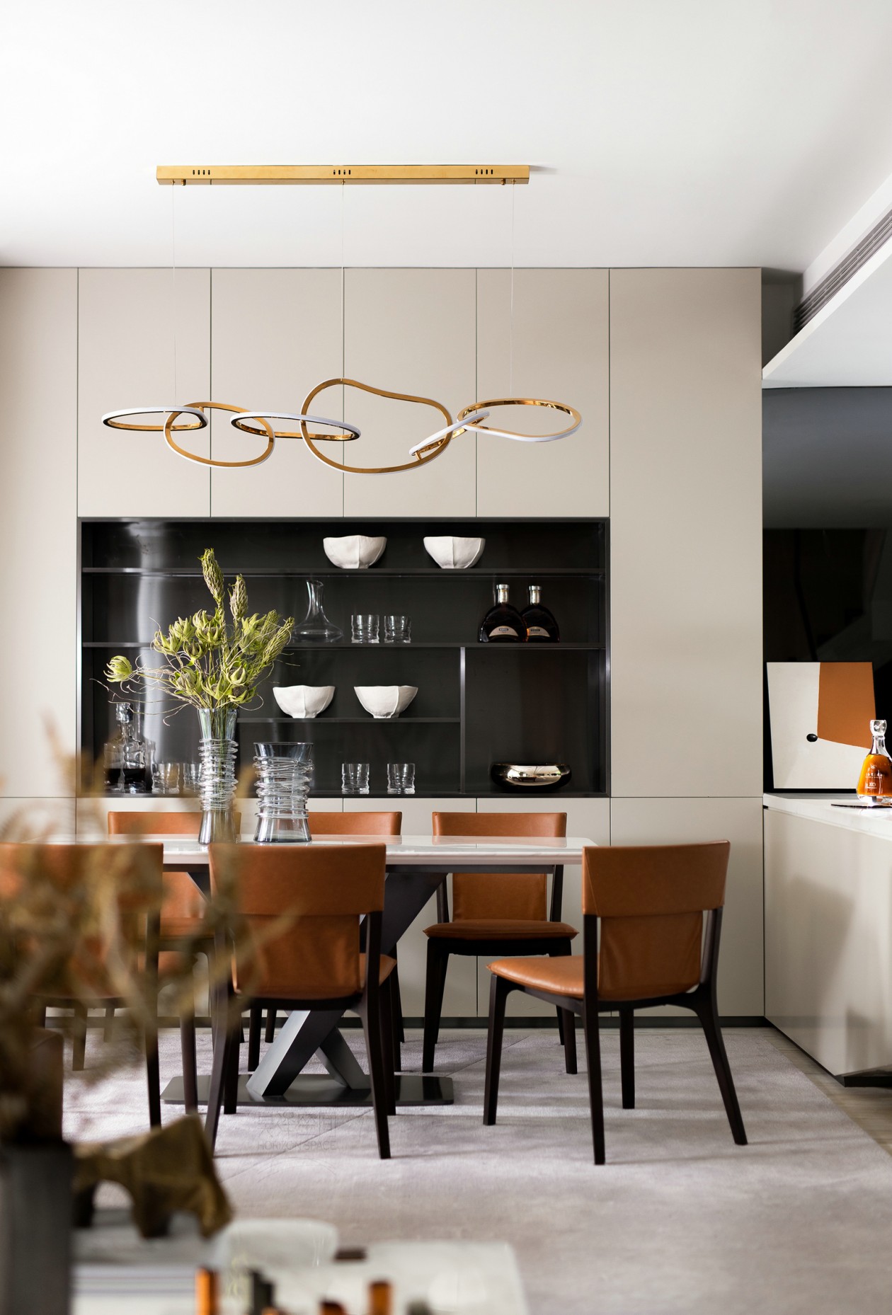 餐廳吊燈流線型線條,純粹的空間結構和在細節上的考究,是設計師對Aston Martin的精髓領會。