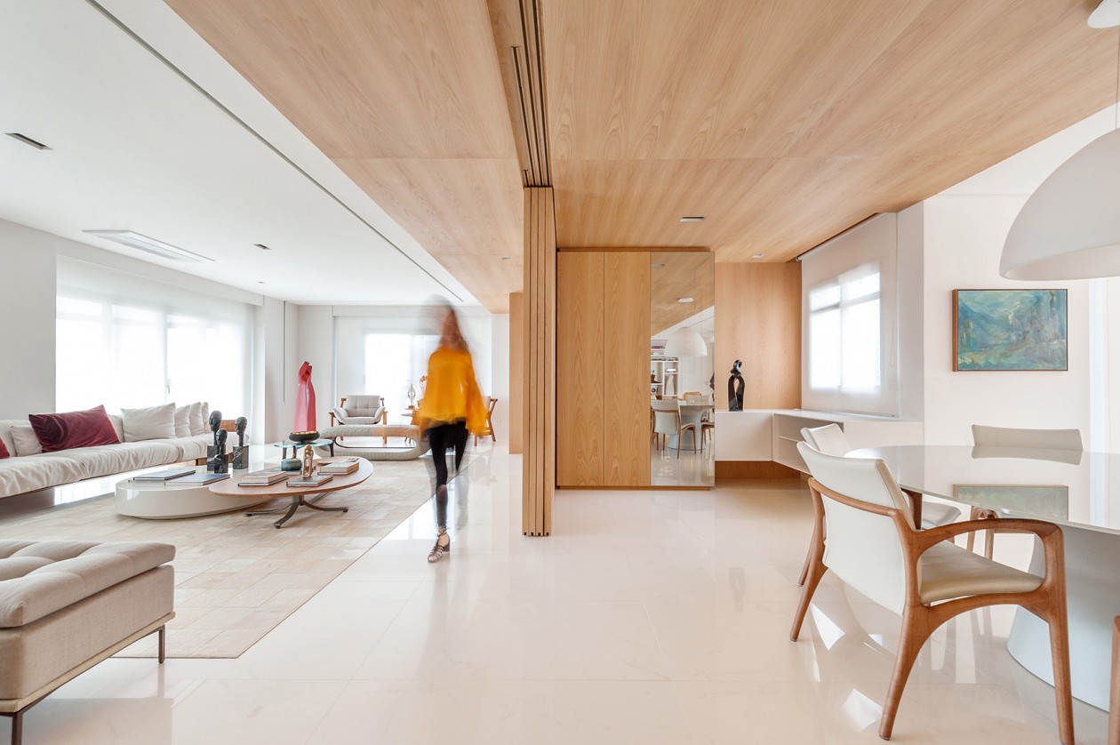 該項(xiàng)目的關(guān)鍵和出發(fā)點(diǎn)在于重新考慮內(nèi)部功能分區(qū)、調(diào)整原有空間界限。建筑師拆除了分隔房間的墻體,在餐廳旁設(shè)置了可以向公共空間開放的私密區(qū)域。業(yè)主一家氛圍輕松,希望擁有極簡(jiǎn)風(fēng)格的實(shí)用住宅,促成了地面與墻面的白色基調(diào)。橡木及其細(xì)節(jié)營(yíng)造出更加溫馨的氛圍,使居住者可以享受熟悉的家庭時(shí)光。此外,房間還選用中性的、淺色的天然材料,適用且
