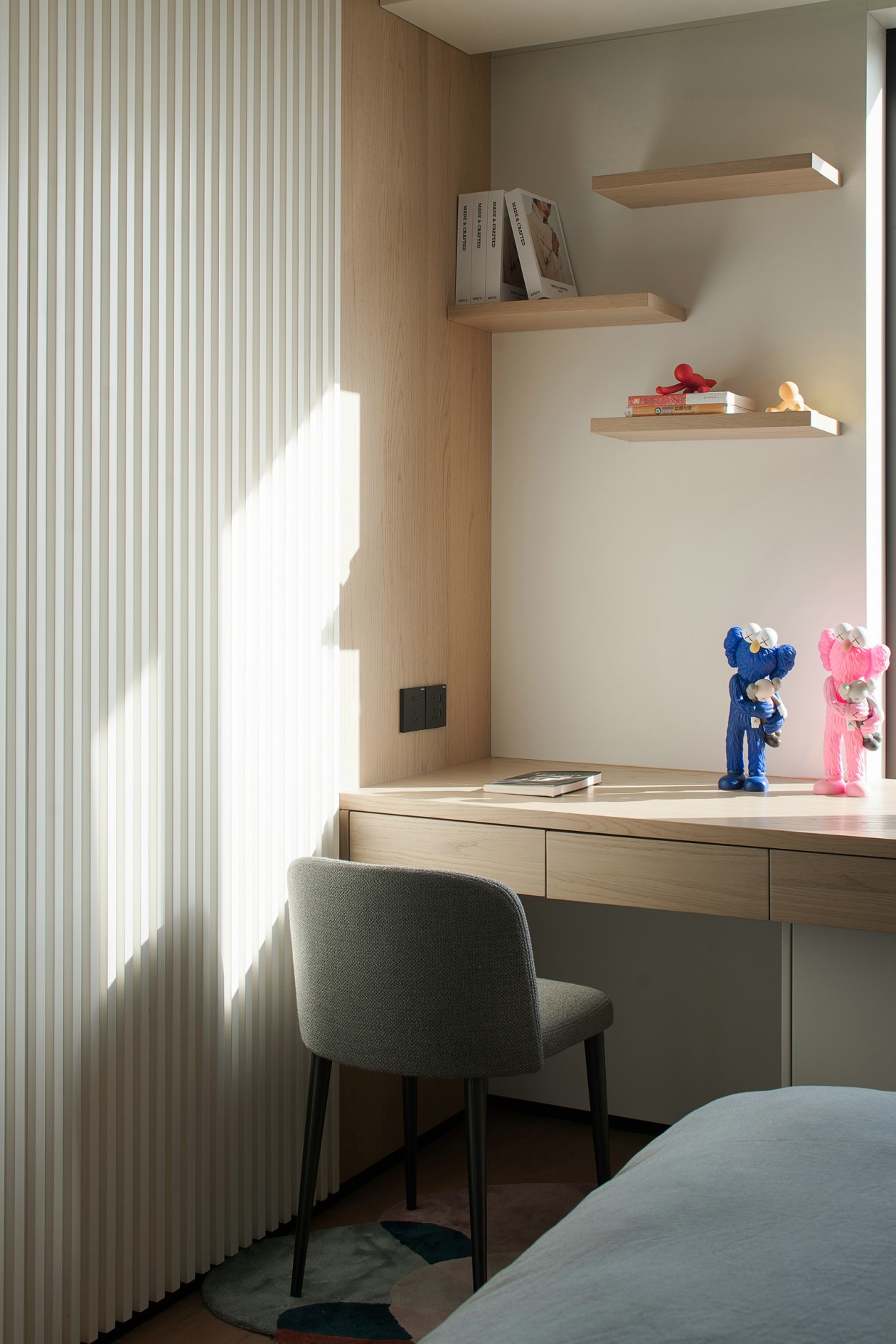 不同場景搭建了只屬于孩子的城堡,在有限的小孩房空間里盡可能去滿足當下的功能需求,又不失協調的表達收納美學。