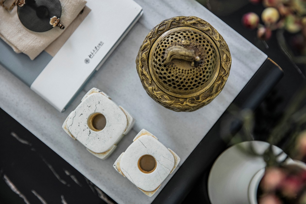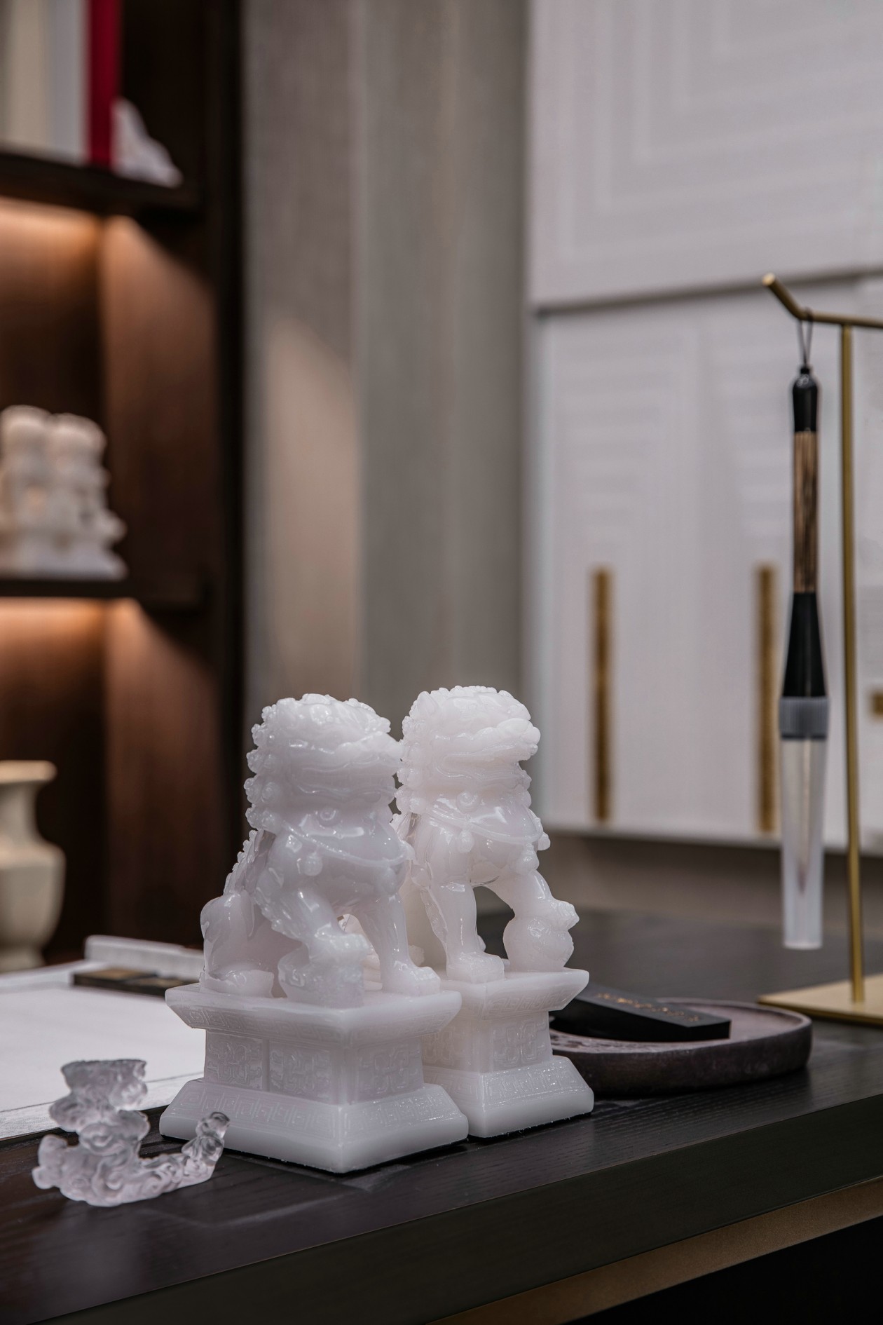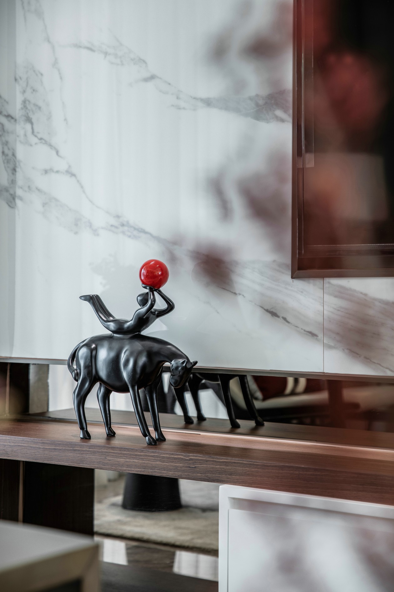 家庭便是居住者的精神世界,主人的愛好、收藏與性格都在家中一一展露,書房條案和邊柜上的雕塑擺件,不突兀卻很醒目,回歸居住者的精神世界,與居住者達成默契而建立平衡。