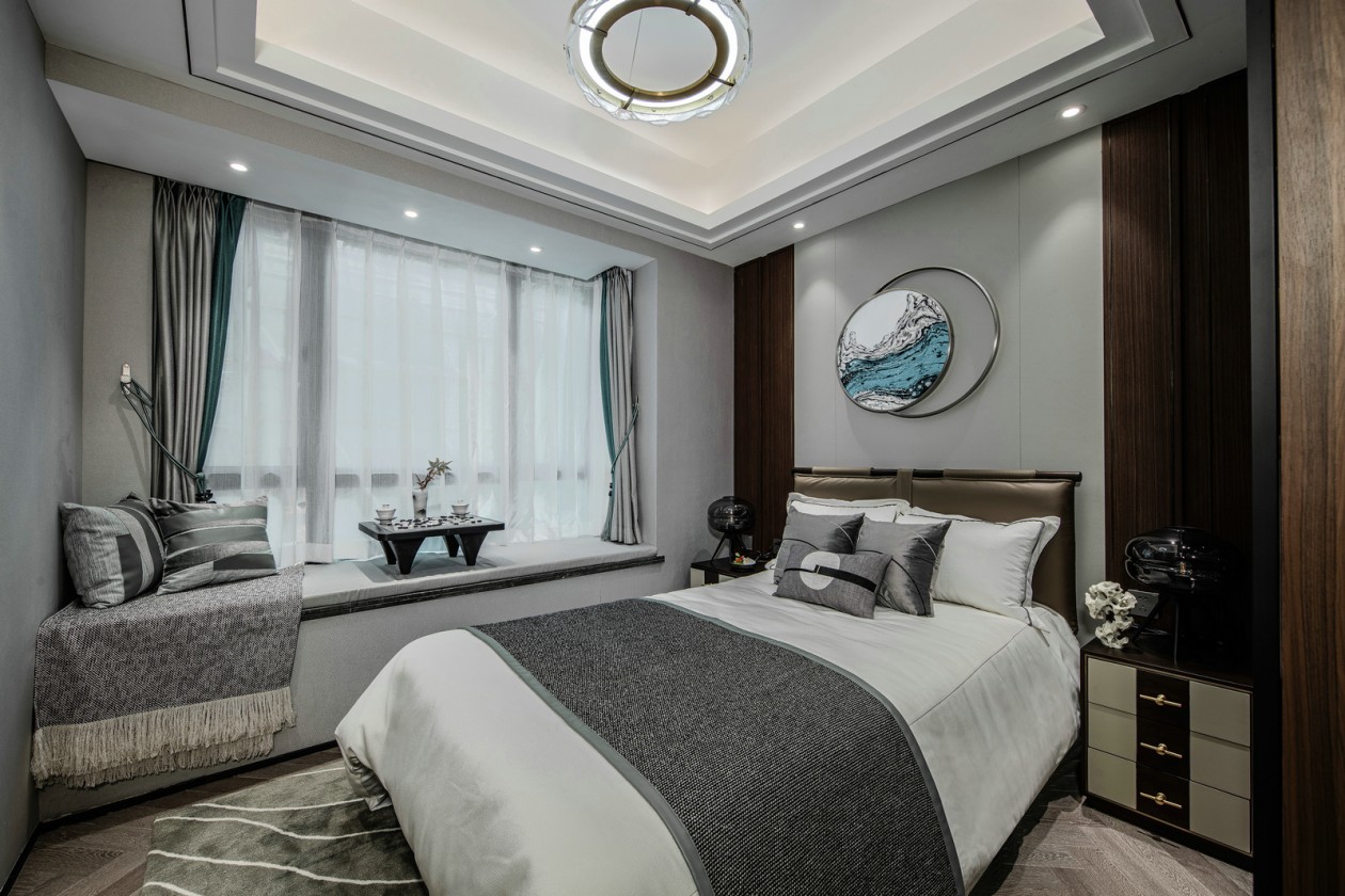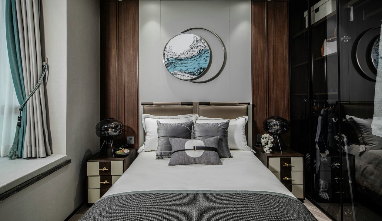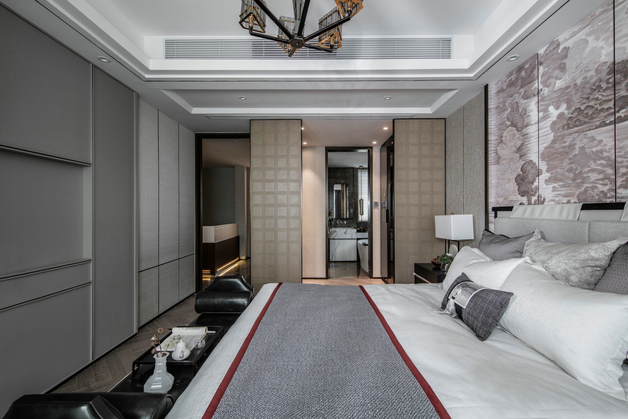 主臥室、衣帽間引入中式元素,因人而設的氣場,極具生命力,溫馨而又包容,居住其中的人們從浮躁生活中脫離出來,感受靜謐之境。
